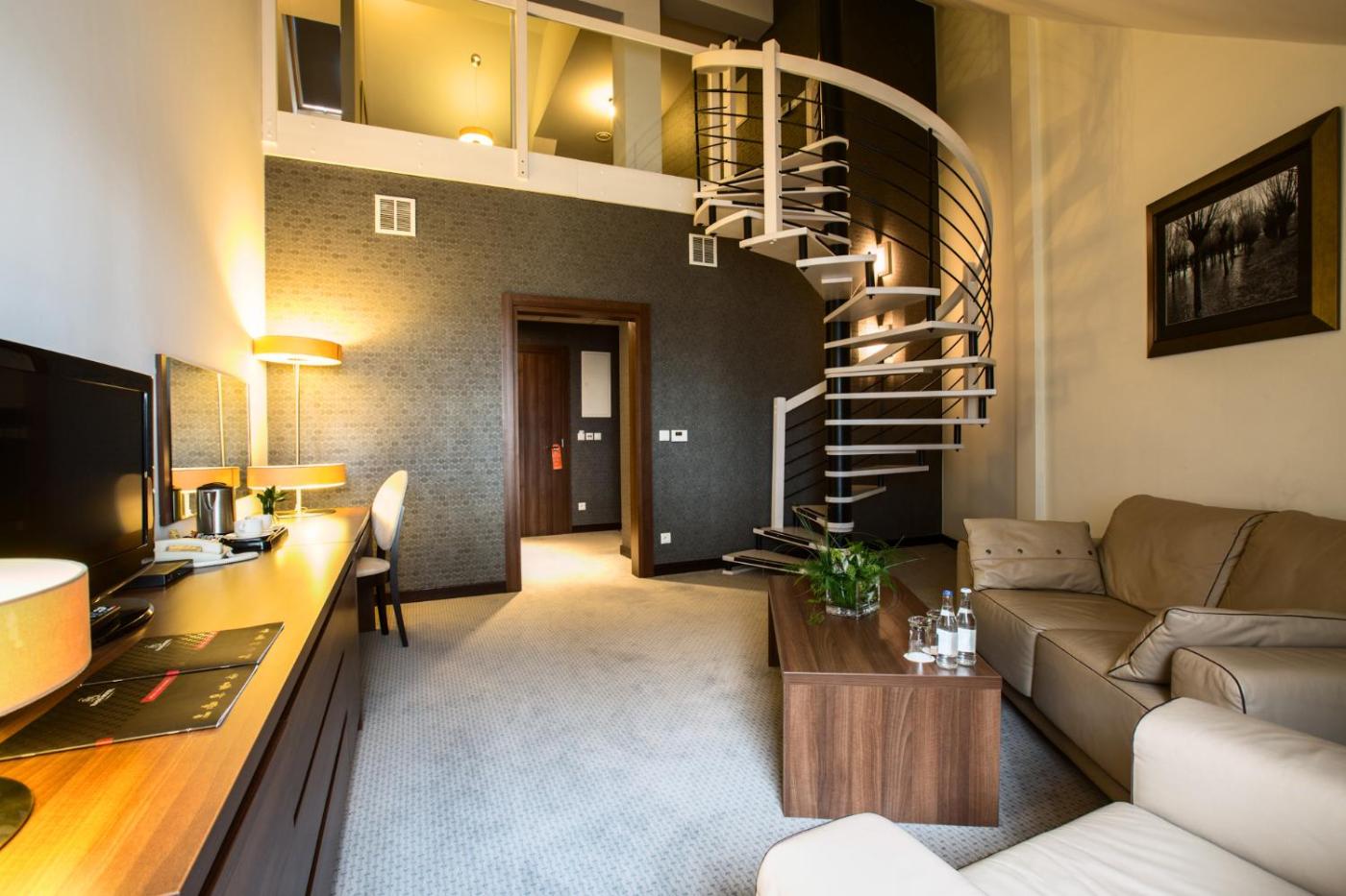 Apartament typu Suite. Ten elegancki, dwupoziomowy apartament typu suite obejmuje sypialnię, salon z telewizorem z płaskim ekranem i dostępem do kanałów kablowych i satelitarnych, a także łazienkę z kapciami i bezpłatnym zestawem kosmetyków. Apartament typu Suite - 4 osobowy. Powierzchnia pokoju ok.: 45 mkw. ;