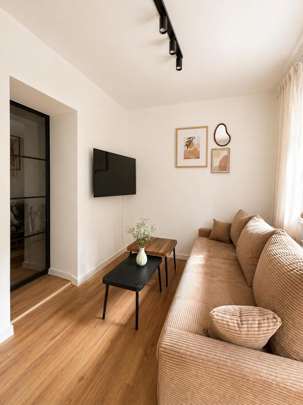 Oferta apartamentu obejmuje sypialnię (1), taras oraz salon z telewizorem z płaskim ekranem.