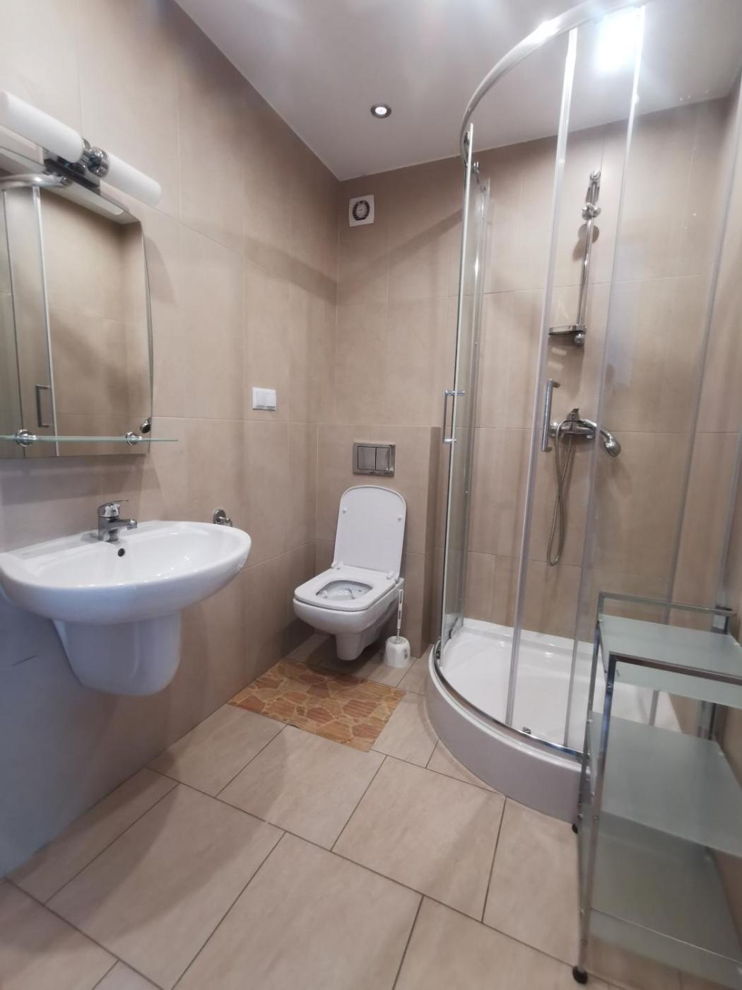 Pokój dwuosobowy z prywatną łazienką. In the well-fitted kitchen, guests will find a stovetop, a refrigerator, kitchenware and a microwave. The double room offers a washing machine and a tea and coffee maker, as well as a private bathroom boasting a shower. The unit has 2 beds. Pokój Dwuosobowy - 3 osobowy. Powierzchnia pokoju ok.: 16 mkw. ;